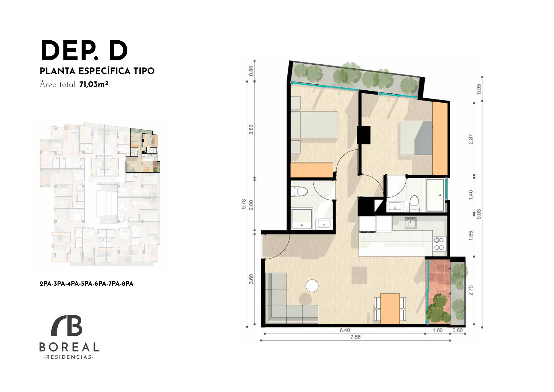 Tipo de Departamento: Dos Dormitorios con Jardinera y Terraza